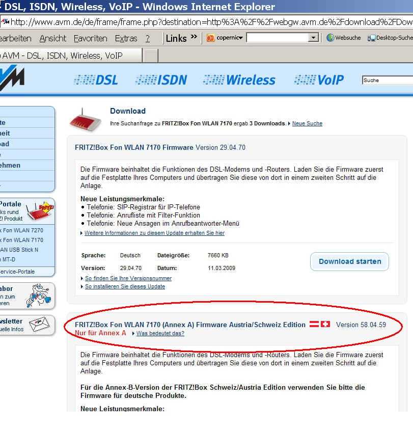 Hier gibt es die neueste Version der Firmware für die FritzBox 7170.